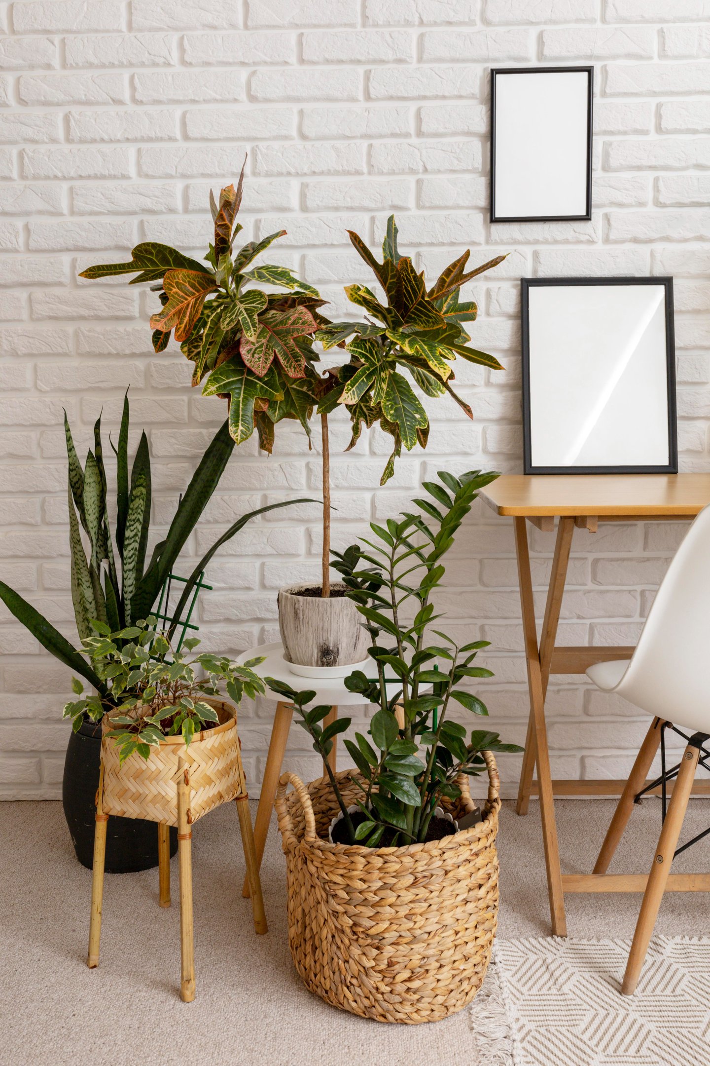 Por outro lado, as plantas com folhas verde-claro, como o Pothos ou a Peperomia, harmonizam-se perfeitamente com paredes neutras, criando uma atmosfera fresca e arejada. Essa combinação funciona particularmente bem em ambientes menores, onde a luz natural pode ajudar a realçar a luminosidade tanto das folhas quanto das paredes, conferindo um aspecto mais amplo ao espaço.