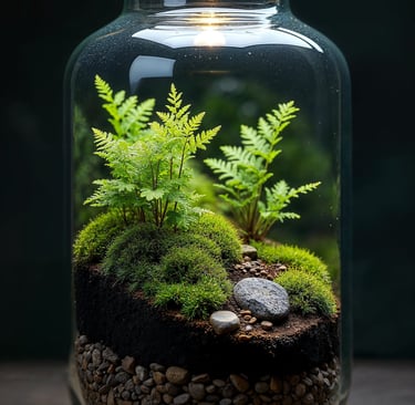 Montagem de terrários: Aprenda a montar um terrário fechado em casa com nosso passo a passo simples. Descubra as camadas de drenagem, substrato, musgo e as melhores plantas como fitônia, peperômia e samambaias. Cuidados mínimos e a umidade natural necessária para manter seu terrário saudável.